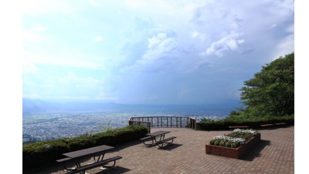 山形市街地から車で約20分、蔵王山系の緑に包まれた広大な自然公園。展望デッキに立つと、遮るものがほとんどなく山形市街が眼下に広がる開放感は格別で、日本夜景遺産にも選ばれている。入場は無料なのも嬉しいところです。